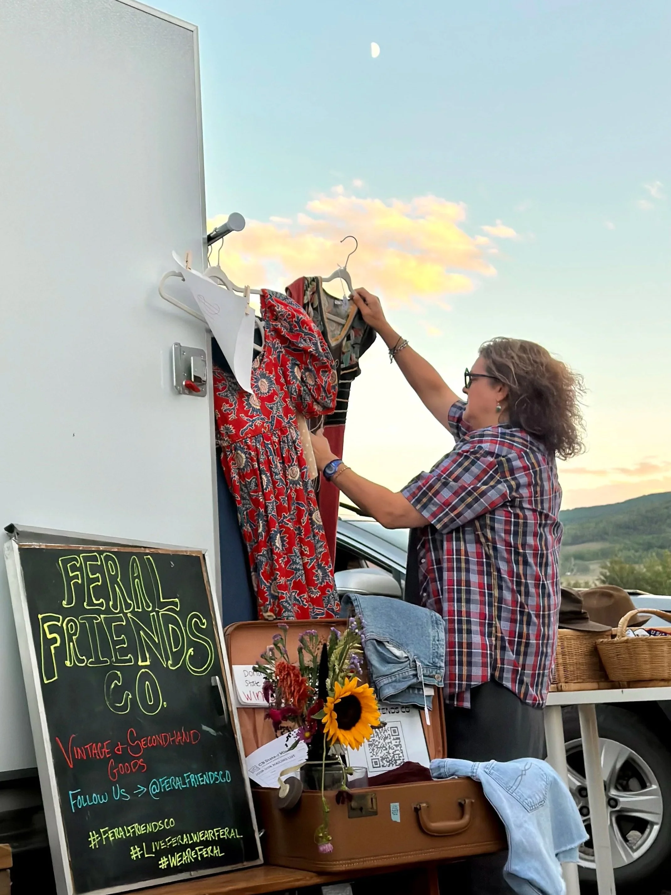 Our trailer became the heart of Feral Friends Co.—part closet, part creative studio, part home on wheels. Every event meant a new layout, a new flow, and sometimes… a new challenge (wind, mud, limited space—you name it).