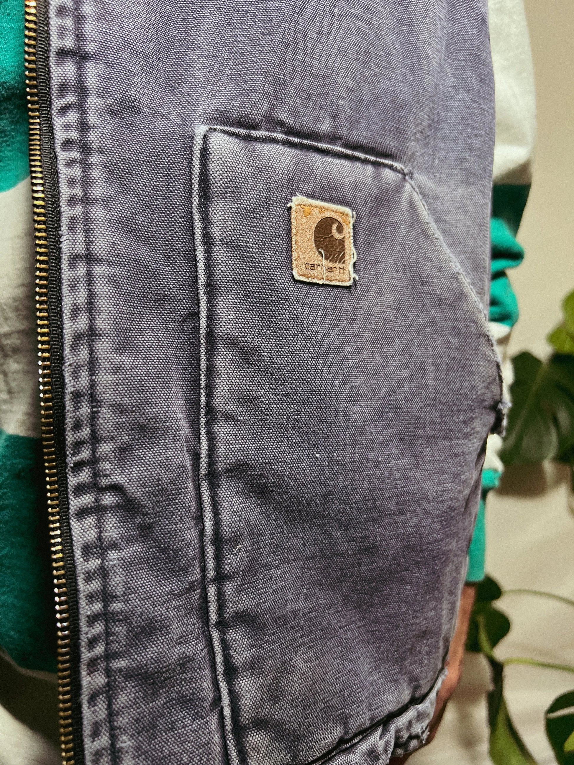 This Carhartt workwear vest brings rugged utility with its distressed blue canvas, nylon lining, and durable heavy-duty design. Worn-in character makes it perfect for real workwear enthusiasts or vintage Carhartt collectors.