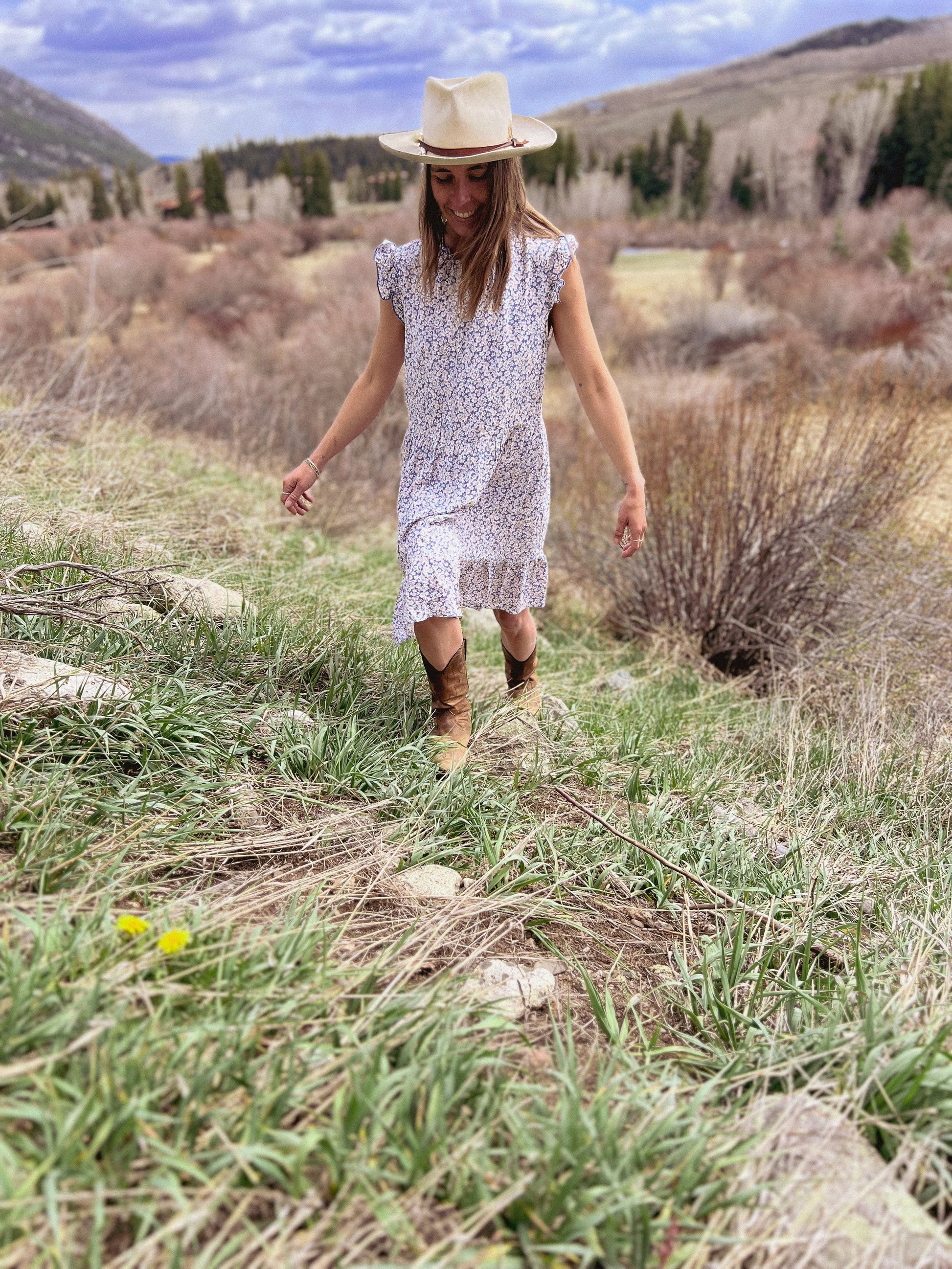 Kirundo Women’s Blue Floral Ruffle Mini Dress
