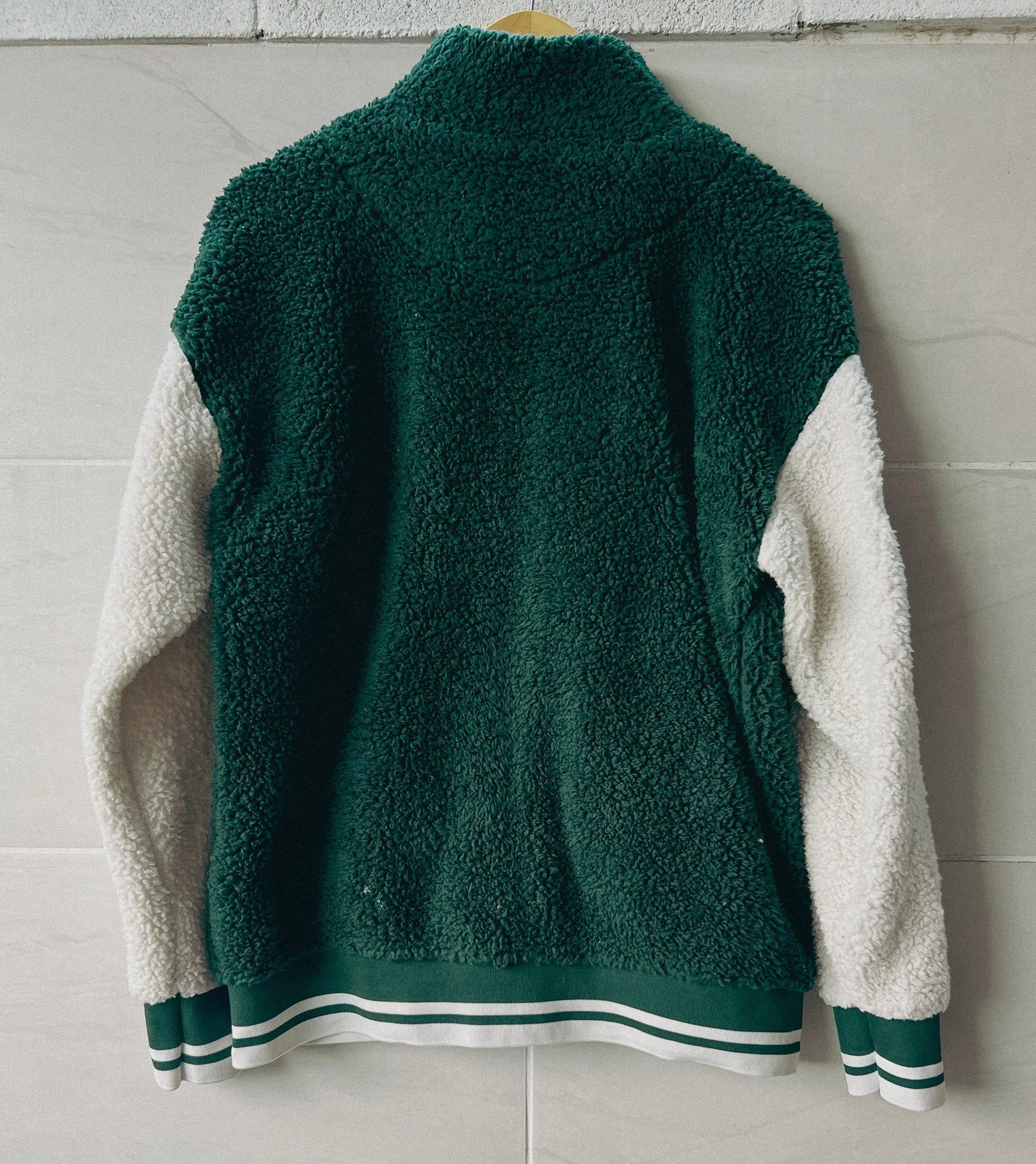 This No Comment LA sherpa jacket brings cozy vibes with a side of West Coast attitude. Featuring ultra-soft sherpa fleece, bold “LA” varsity-style patches, and an oversized zip-up silhouette, it’s perfect for layering over hoodies or styling solo for standout streetwear flair.