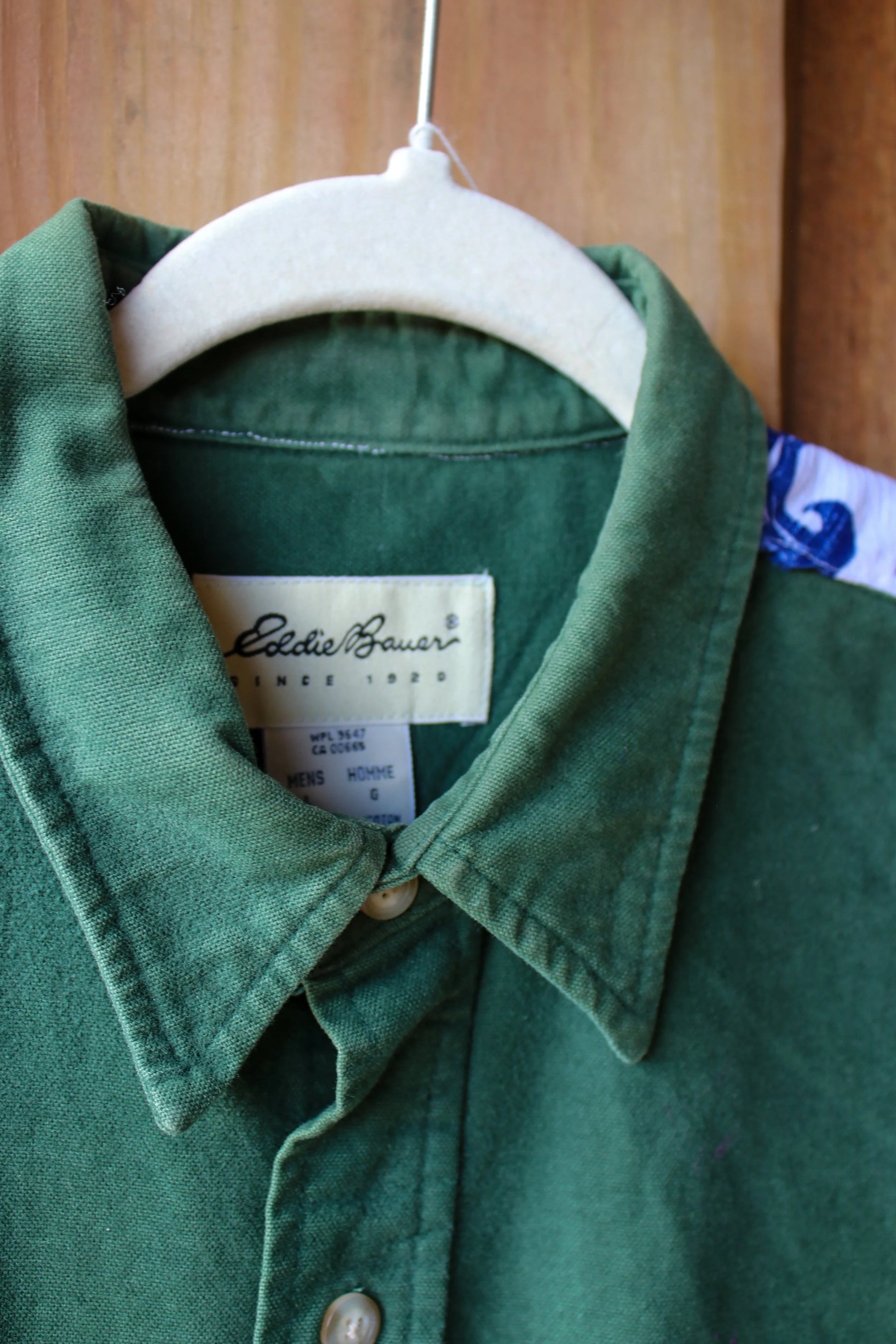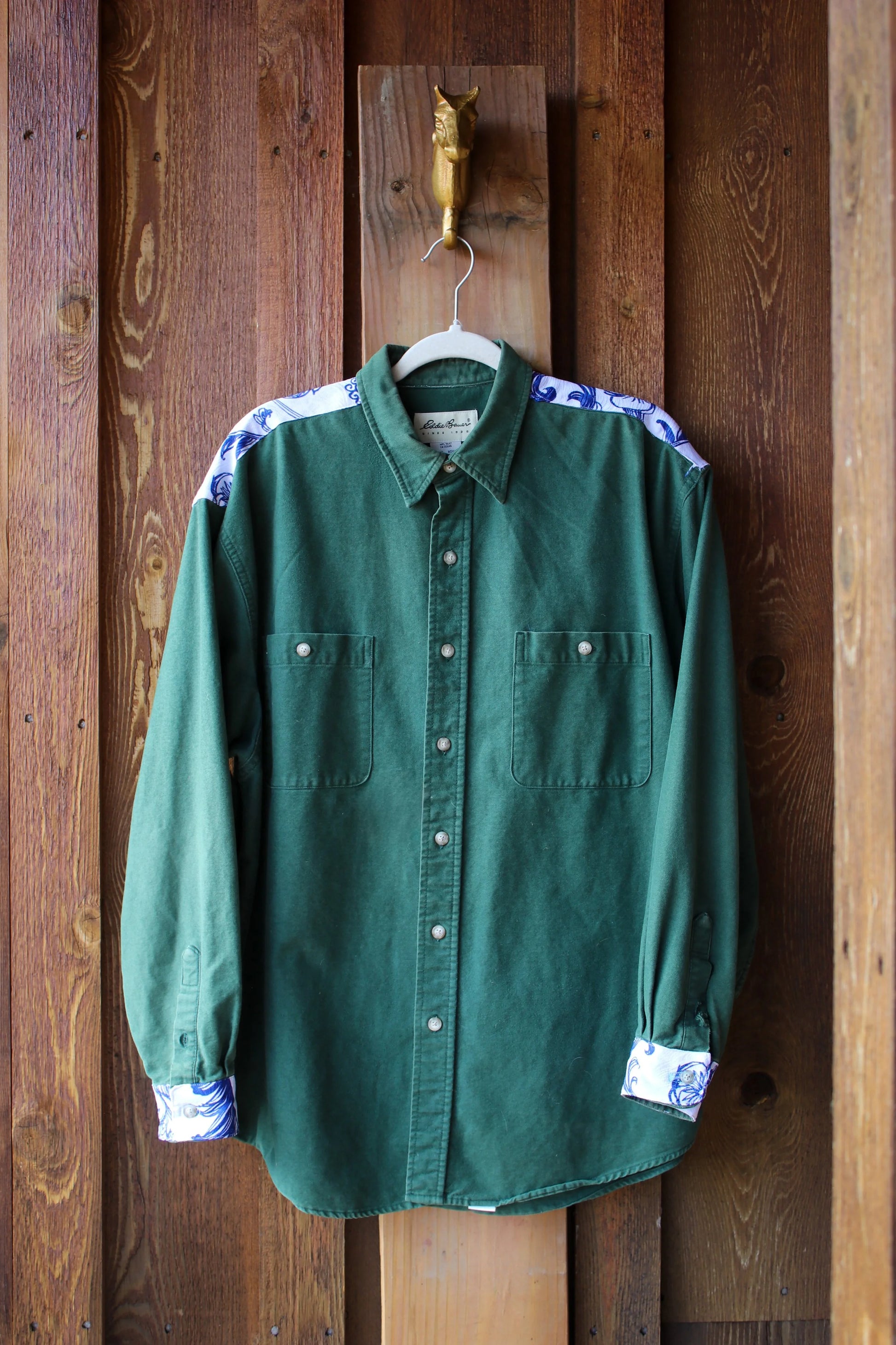 Green Vintage Eddie Bauer buttondown with paisley back panel + matching cuffs. A subtle nod to western flair.