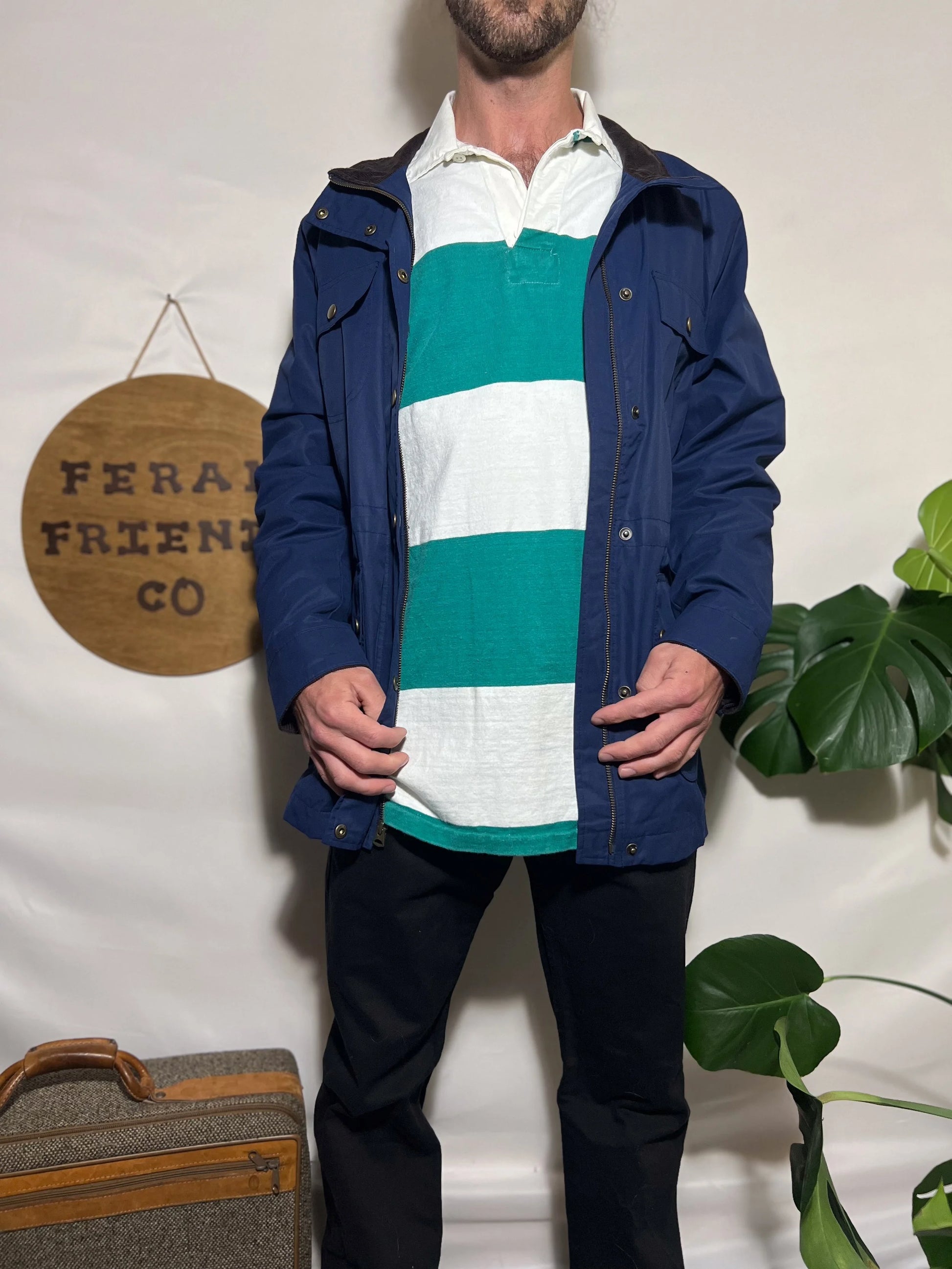This vintage Lands’ End workwear-style jacket is built for durability and comfort, featuring a rugged cotton-nylon blend in a classic utilitarian cut. With a minimal lighthouse tag and sturdy construction, it’s a low-key essential for layering, outdoor work, or just repping that timeless prep-meets-workwear look. Perfect for city layering, cabin weekends, or as a versatile year-round piece.