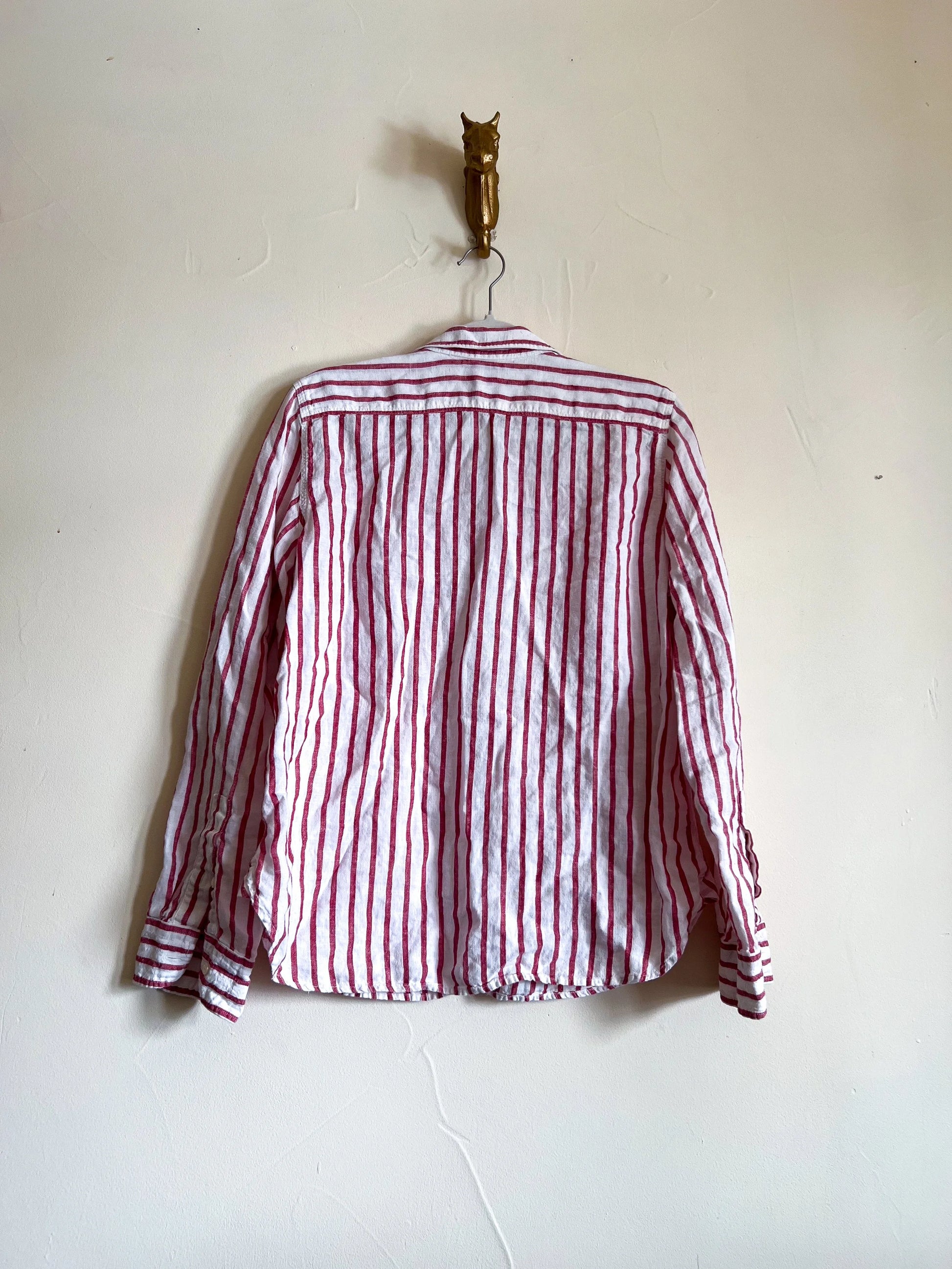 Crisp, breezy, and effortlessly timeless—this vintage LRL Lauren Jeans Co. button down is crafted from 100% linen and features a subtle red pinstripe on soft white. With a relaxed, slightly structured fit and a classic collared silhouette, it’s perfect for warm-weather layering or adding a refined edge to your outdoorsy wardrobe. Style it open over a tank with denim, tuck it into vintage trousers, or tie it at the waist for a preppy-meets-rustic look. Perfect for summer travel, farmer’s markets, or linen-lovers chasing that Ralph Lauren cottagecore charm. Size: L 100%