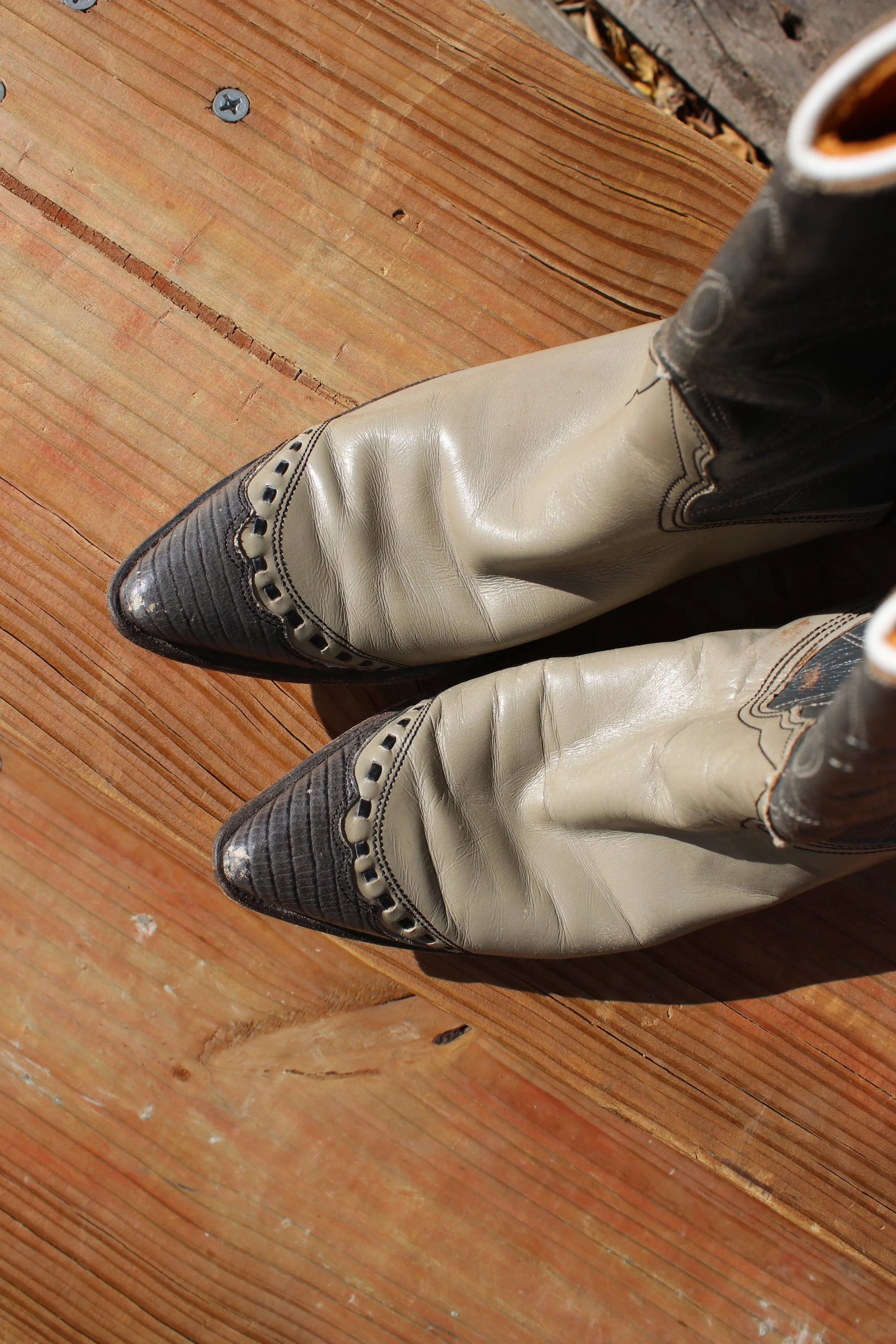 Vintage Nocona Women’s Tan & Brown Pointed Toe Cowgirl Boots – Size 7 Goodyear Neolite Sole