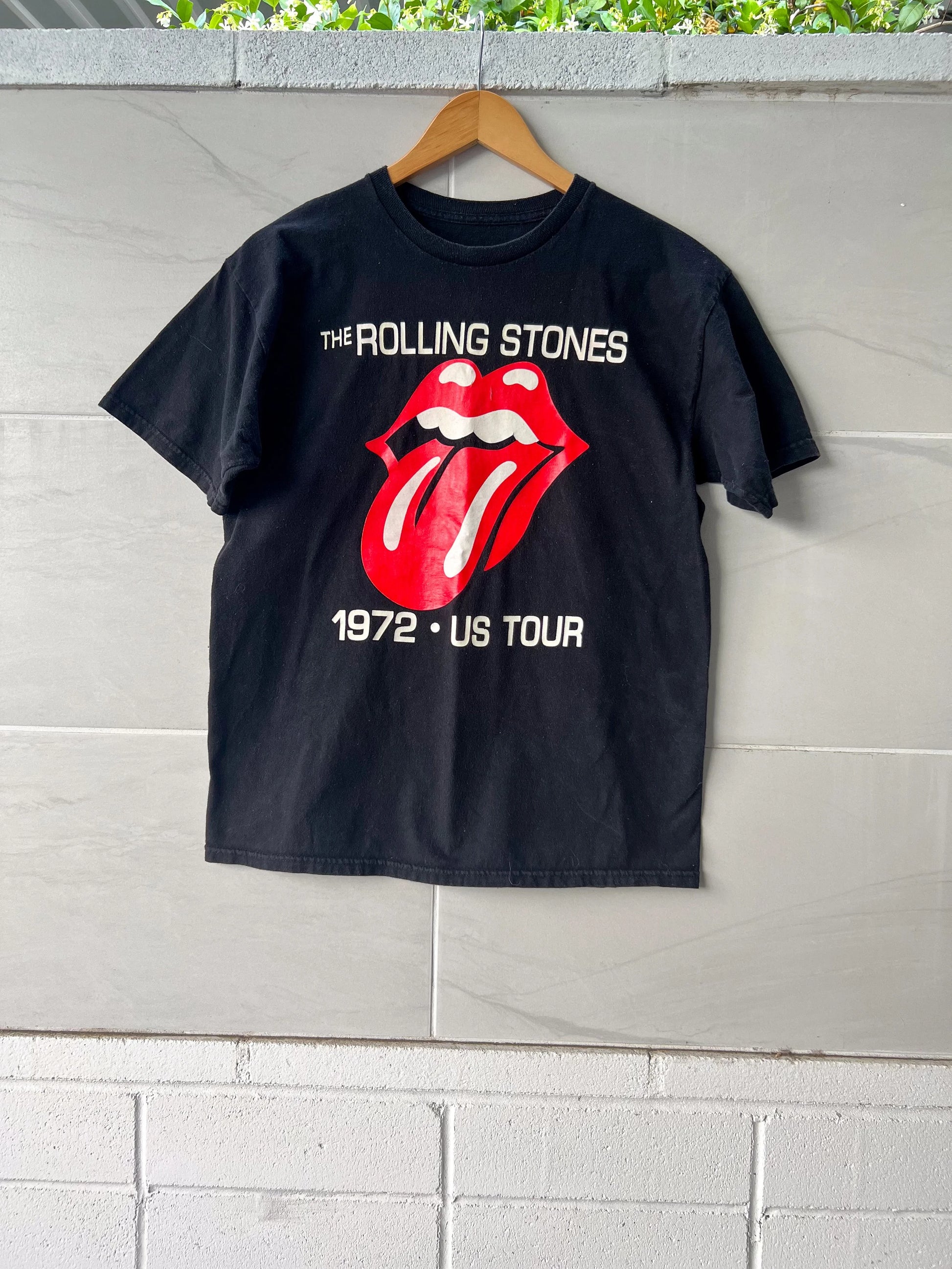 This Rolling Stones 1972 tour tee is soft, broken-in, and full of classic rock energy. Featuring the iconic tongue logo and "1972 Tour" graphic on a lightweight cotton body, it brings serious vintage vibes. The print shows natural cracking and the fabric is ultra-soft—perfect for concerts, streetwear, or layering under a leather jacket.