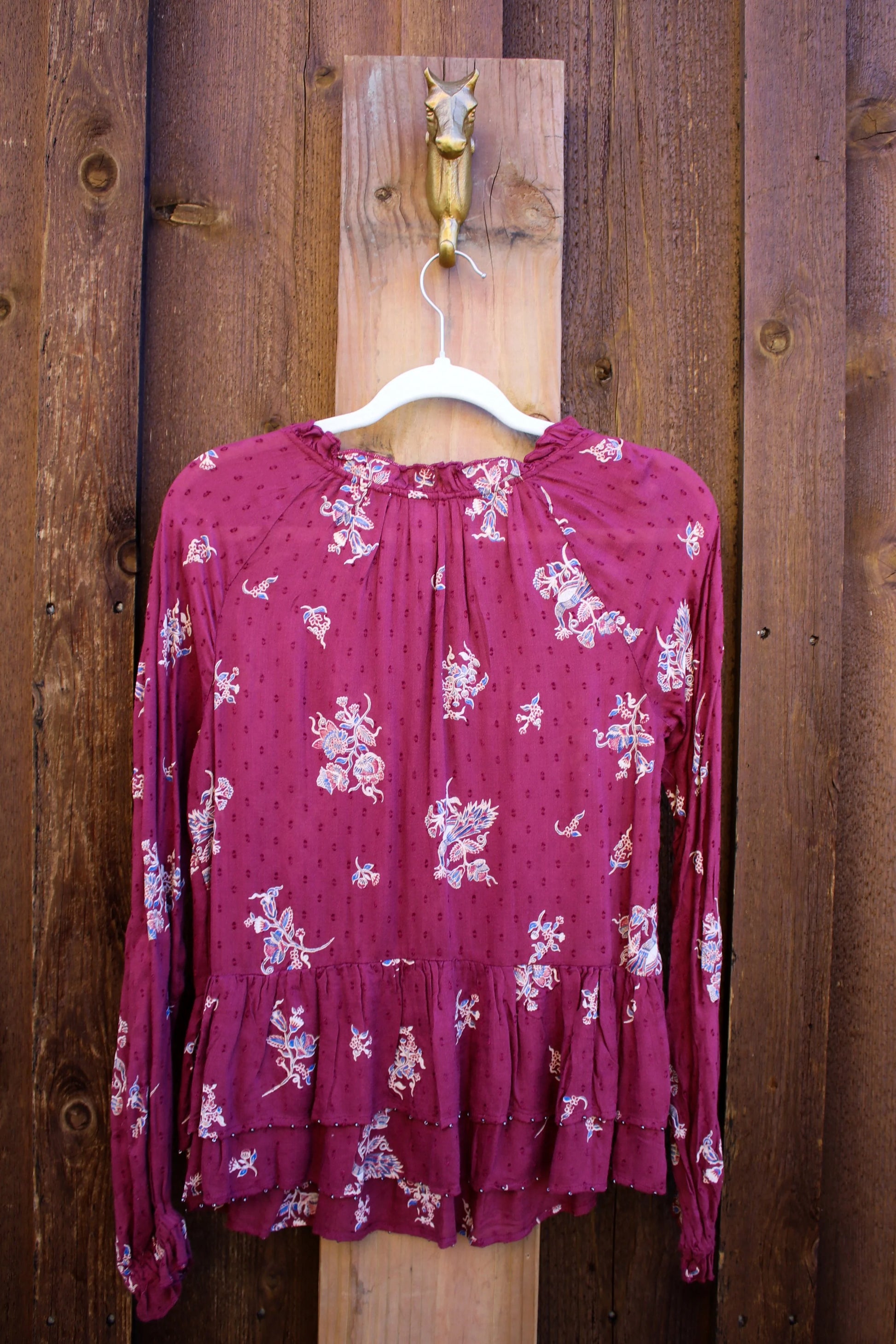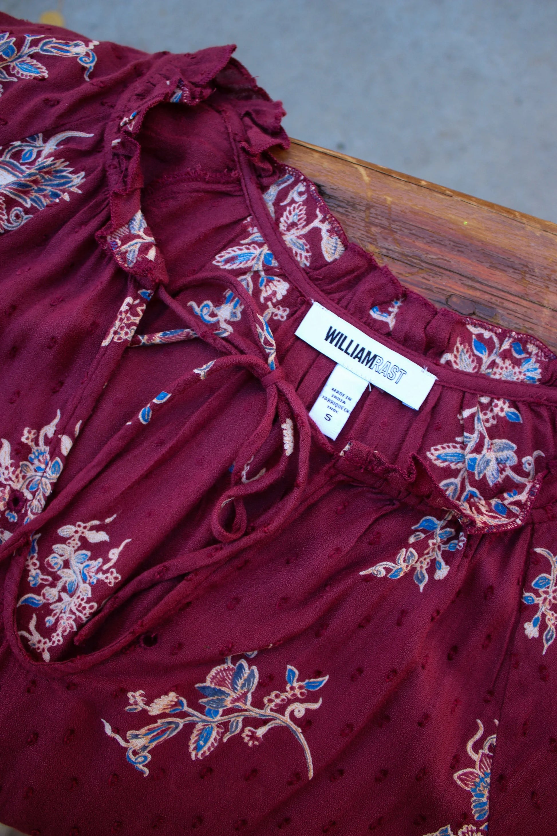 William Rast women’s maroon v-neck tie top made from ultra-soft modal fabric with beaded waist ties. Perfect for transitional weather and effortless everyday wear.Size: Small