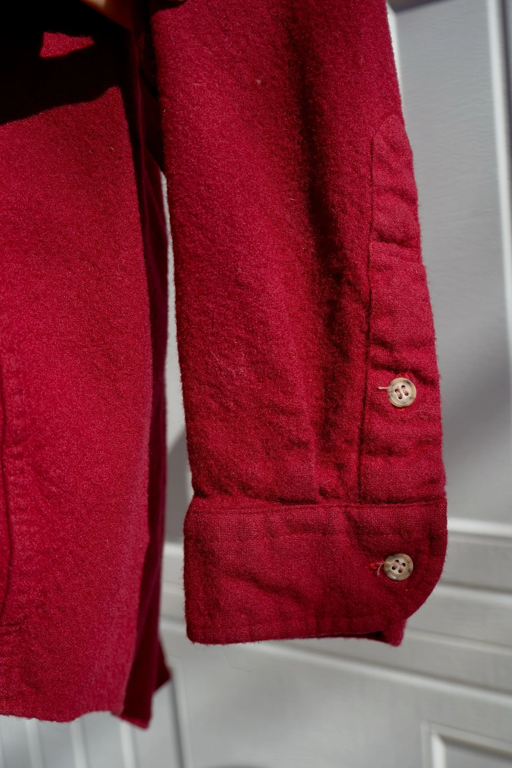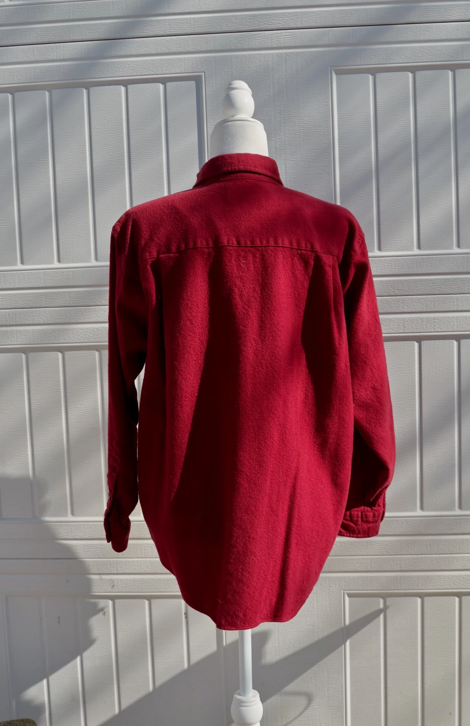 This one-of-a-kind upcycled gem started as a vintage 1980s Pendleton red wool button-down and was reimagined with a retro embroidered Santa patch that reads “Don’t Follow Me, I’m Lost Too!” — the perfect blend of lodge humor and holiday trail energy.